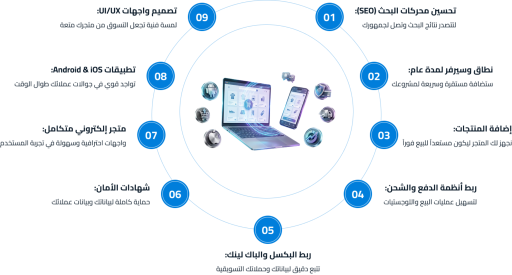 في “وان بليون”، نؤمن أن مشروعك يجب أن يكون ملكك بالكامل. لماذا تستأجر متجراً بينما يمكنك امتلاكه؟ نوفر لك باقة “المتاجر والتطبيقات” التي تمنحك استقلالية تامة، تحكم مطلق، وتوفير هائل على المدى الطويل